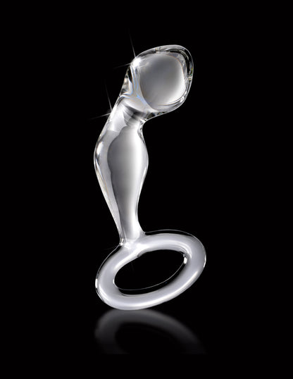 Perfect for anal play, this luxurious glass plug No.46 features a tapered tip to ease insertion, bulbs that provide extra sensation, and a narrow neck that allows your muscles to wrap around and hold it in. Cleverly curved for P-spot stimulation, this plug guarantees the most explosive orgasms you've ever imagined! The ring at the base ensures it won't slip too far inside, and offers safe and easy removal. The hypoallergenic glass is nonporous and body safe, and when cared for properly, is designed to last a lifetime.
